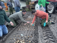 Afgelopen donderdag 23 oktober is in Voorhout opnieuw onze CNB Narcissenshowtuin geplant. In het voorjaar van 2026 belooft de tuin weer een bijzondere inspiratieplek te worden. Met maar liefst 229 verschillende soorten narcissen, waaronder 20 tot 25 nieuwe variëteiten, wordt het opnieuw een verrassende beleving voor kwekers, klanten en bloemenliefhebbers.