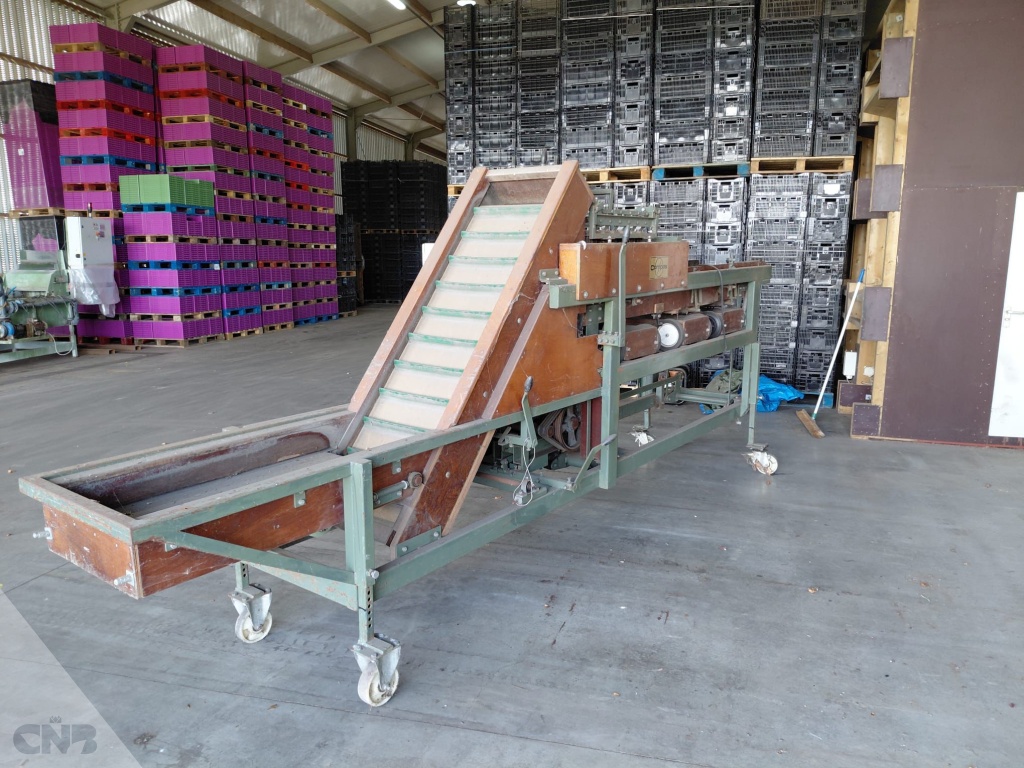 voorraadbak met opvoerelevator van 47 x 243 cm.